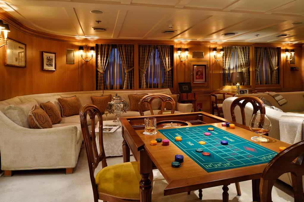 As well as her impressive lounging and dining facilities, Christina O also features a unique variety of leisure and entertainment facilities, particularly on her promenade deck. These include an oak-panelled library with green upholstered chairs and settees, and a huge saloon, boasting three large seating areas. This space can also serve as a ballroom, with a raised dais for the orchestra, as well as a cinema thanks to a drop-down screen and state-of-the-art sound system. There is also a glass-panelled gymnasium on board and a music room with a Steinway piano where Maria Callas and Frank Sinatra once performed.